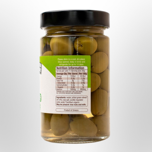ABSOLUTE ORGANIC Greek Green Olives - Pitted Organic 295g