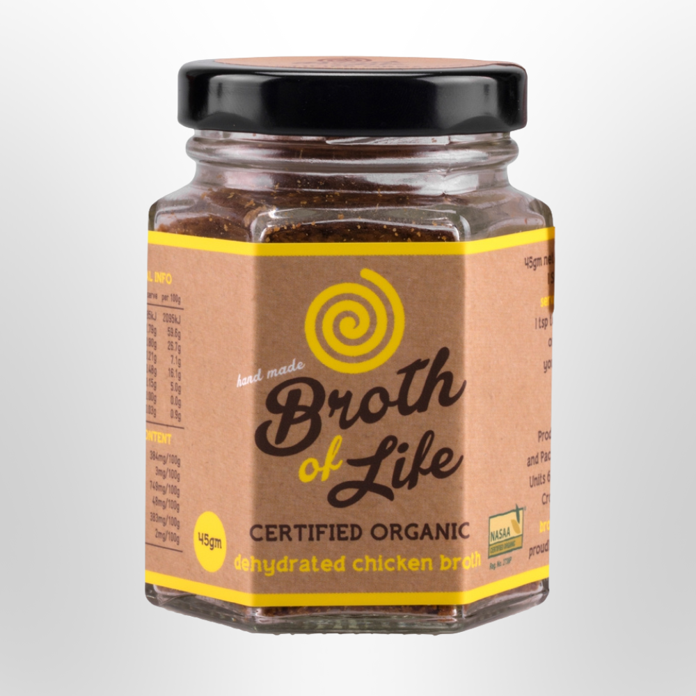 Crafted in Australia from certified organic chicken bones, this broth undergoes a slow-simmering process to extract maximum nutrients. It's dehydrated at a low temperature to preserve its vital goodness, resulting in a versatile powder that's easy to store and use. Free from artificial additives, preservatives, gluten, and dairy, it's a clean and convenient way to enjoy the benefits of homemade broth, whether as a comforting drink, a flavourful base for cooking, or a nutrient boost for any meal.