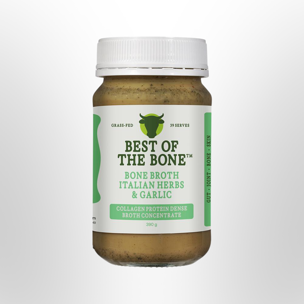 Savour the rich, comforting taste of Italy with Best of the Bone Beef Bone Broth Concentrate infused with aromatic Italian herbs and garlic. This delicious and nutrient-rich concentrate offers a convenient way to boost your daily nutrition, blending the traditional goodness of slow-cooked bone broth with a delightful Mediterranean twist.