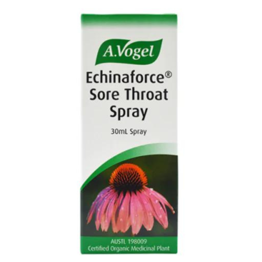 A.Vogel’s Sore Throat spray is made from the well known herbal remedy Echinaforce® combined with Sage tincture and is a herbal remedy used to relieve sore throat symptoms.