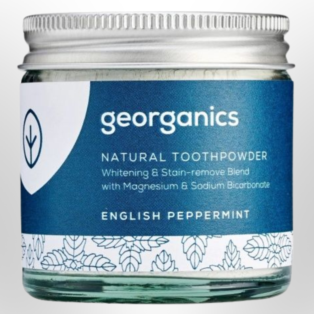 Georganics English Peppermint Toothpowder is a natural, fluoride-free toothpowder crafted to support healthy teeth and gums without synthetic ingredients. Made with food-grade mineral powders like calcium carbonate and kaolin clay, it gently cleans and polishes while maintaining a healthy pH in the mouth.